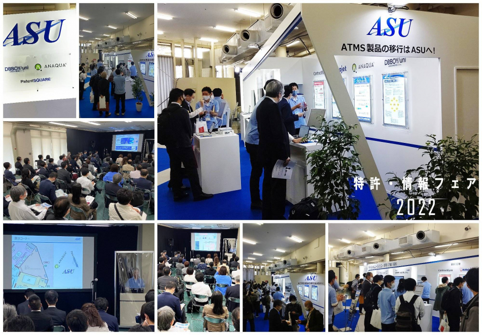 「2022特許・情報フェア&コンファレンス」出展しました。 たくさんの皆様にご来場いただきスタッフ一同御礼申し上げます。 個別相談会「ASUカフェ」のお申し込みはこちら https://www.asu.co.jp/seminar/entry-970.html
