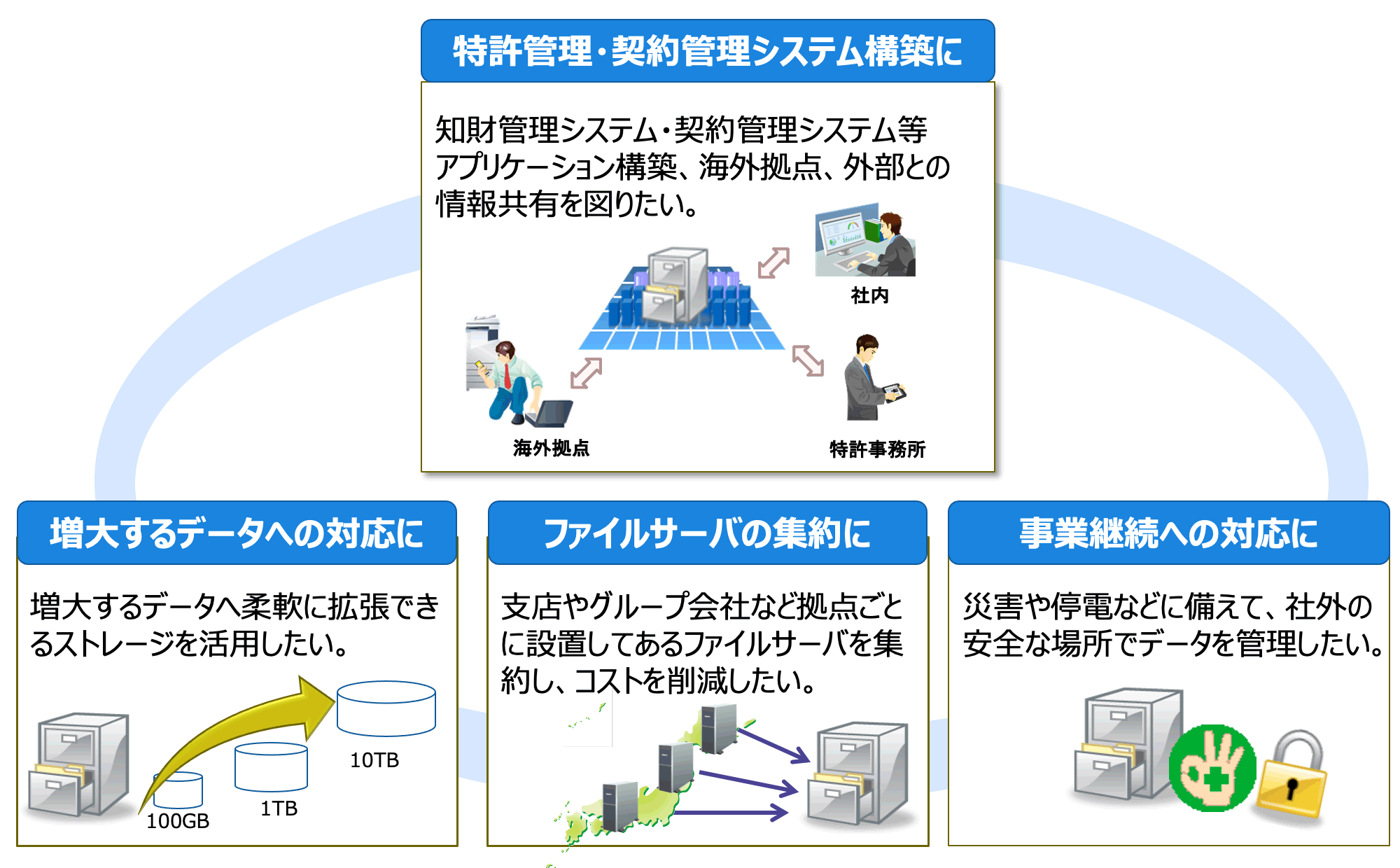 - データ容量や利用者の増加に合わせた拡張が可能。過剰なコストを抑制
