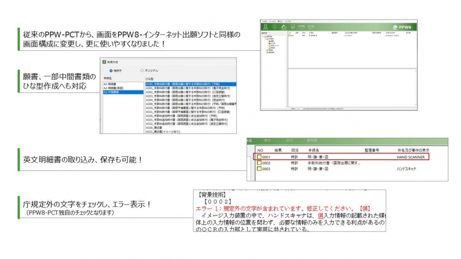 富士通製ATMS/PPWの後継製品として、同様の操作感で使用できる出願支援ソフトが 新機能・機能改善して新しくリリースいたしました!