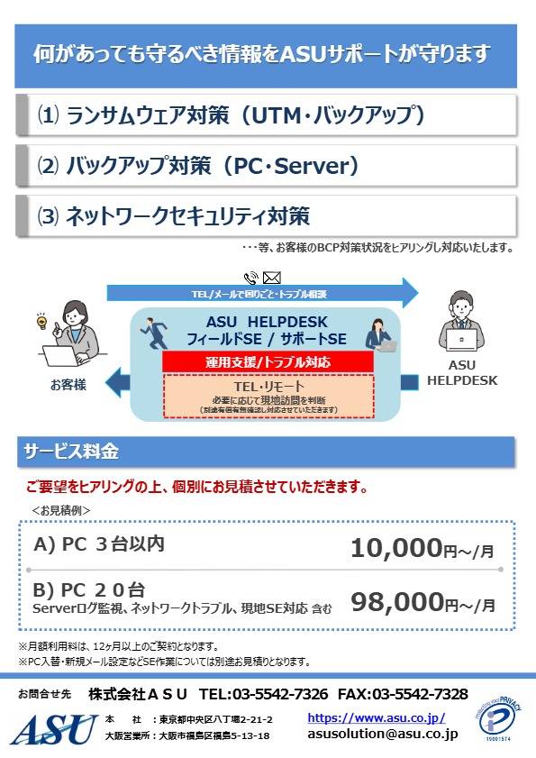 ランサムウェア被害に会わないためには! メール対策、社内教育できていますか? ⇒ お客様の情報システム部として機能します!